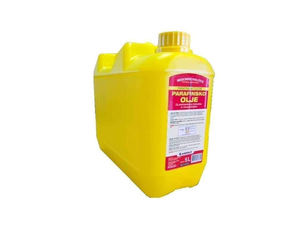 Účel a použití: parafínový olej se používá k utěsnění plovoucích vík k tomu přizpůsobených nerezových sudů pro uchovávání vína a ovocných šťáv, k mazání rotujících součástí potravinářských strojů a náprav a všude tam kde je nutná zdravotní nezávadnost. Olej nalejeme do mezikruží plovoucího víka a stěny sudu až po vrchní hranu plovoucího víka. Spotřeba pro 50L sud cca 2 dcl.