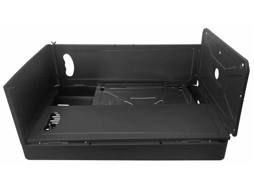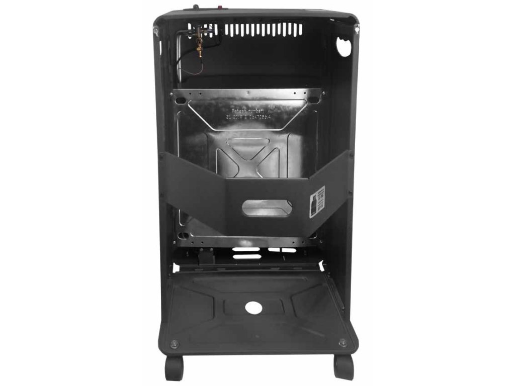 Kamna jsou dodávána se složenou zadní skříní na LPG láhve.